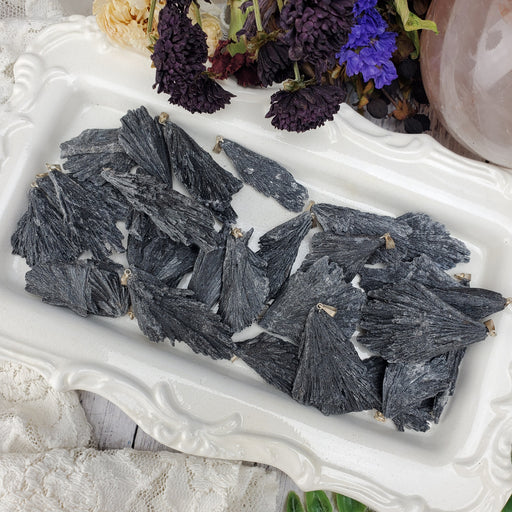 Our Black Kyanite Fans are all natural Brazilian Black Kyanite with Quartz and Mica inclusions. These Black Kyanite Fans are sold as randomly sele...