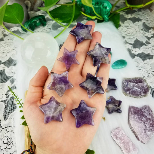 Our Amethyst Stars are hand cut and polished from all natural Amethyst. These Amethyst Stars are sold as randomly selected single pieces. They a...