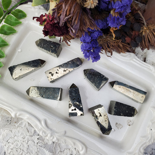 These mini Pyrite Towers are brilliant with shimmering raw pockets of pyrite! Our Pyrite Towers are sold as randomly selected single pieces. They ...