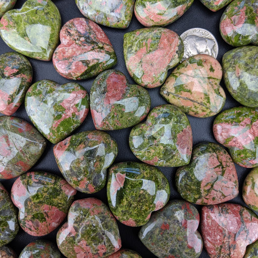 Our Unakite Hearts are hand cut and polished from all natural Unakite. These Unakite Hearts are sold as randomly selected single pieces. They are ...